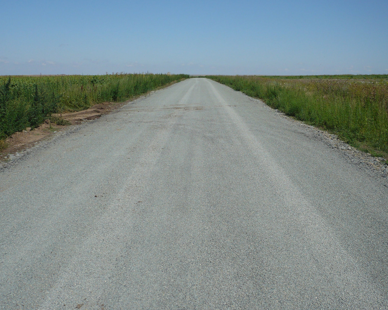 - Realizarea patului de drum din straturi de piatra cu o grosime totala de 25cm si latimi variabile de la 3m la 8m.